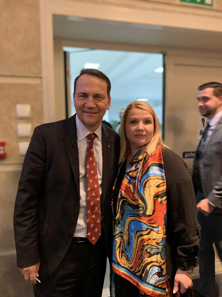 Мала нагоду бути запрошеною на цю зустріч з віцепрем’єром Радославом Сікорським. Він один з тих політиків, які мають тверезу позицію щодо війни в Україні. Як Міністр закордонних справ Польщі, він часто буває в Україні, бере участь у переговорних процесах. Пан Міністр у жовтні цього року отримав від Львівського національного університету імені Івана Франка титул Doctor Honoris Causa. Про це він згадав під час зустрічі і помітно було, що візит до Львівського університету в нього залишив дуже теплі спогади. Щодо головних акцентів зустрічі, то найважливішим питанням був таки план миру. Зустріч відбулася, власне, після наради в Брюсселі. Сікорський твердо стояв на позиції безперервної допомоги Україні. Про переговори висловився так: «Нічого про Україну без України. Перемога України – це національний інтерес Польщі». На закиди про те, що Польщу втягують у війну і ця війна не є польською, гостро заперечив і запропонував вшанувати хвилиною мовчання загиблих під час атаки на Тернопіль, серед яких теж була польська дівчинка і її мати. Багато уваги приділив проблемі дезінформації в медійному просторі, розпалюванні конфліктів та ненависті у польському суспільстві, які вигідні сьогодні росіянам. Зауважив, що гібридна війна вже триває і в Польщі. До студентів звернувся з закликом будувати свідоме суспільство, працювати на майбутнє, адже у процесах відбудови України після війни Польща відіграватиме ключову роль.