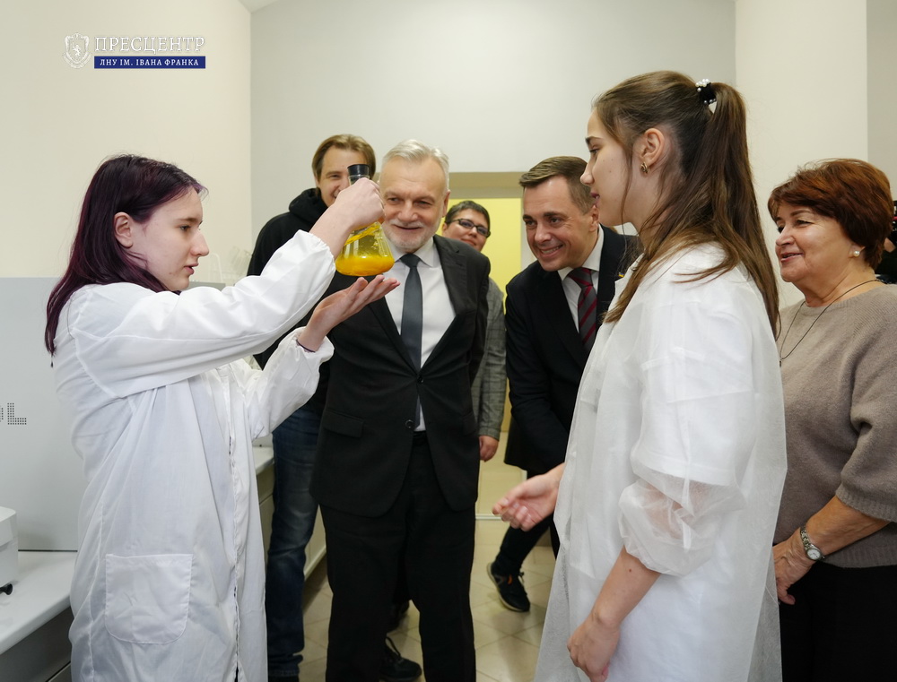 Зокрема, на хімічному факультеті було представлено роботу Центру колективного користування науковим обладнанням «Лабораторія матеріалознавства інтерметалічних сполук», а також хімічну лабораторію освітньо-наукового центру Львівської обласної малої академії наук. Під час розмови зі студентами й викладачами Роман Гладишевський і Микола Трофименко обговорили перспективи розвитку університетської науки, оновлення лабораторної бази та залучення молоді до дослідницьких проєктів.