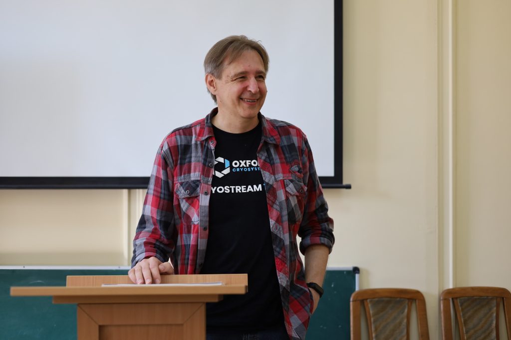 Окрім інтенсивних воркшопів, німецькі гості відвідали лабораторії біологічного та хімічного факультетів, де дізналися про актуальні наукові дослідження, які здійснюють науковці Франкового університету. Декан хімічного факультету, професор кафедри неорганічної хімії Григорій Дмитрів поділився власними враженнями від зустрічі з німецькими колегами: «У рамках тижня Українсько-німецьких семінарів, який відбувався на факультеті журналістики Львівського національного університету імені Івана Франка, ми радо запросили німецьких гостей і на хімічний факультет. Метою візиту було показати умови, в яких відбуваються, як наукові дослідження, так і навчальний процес. У центрі колективного користування науковим обладнанням «Лабораторія матеріалознавства інтерметалічних сполук» старший науковий співробітник Василь Кордан продемонстрував німецьким колегам можливості наукового обладнання. Я ж розповів про те, як змінилися акценти наукових досліджень у час війни, а саме про тестування джерел струму для БПЛА, синтез надлегких та надміцних борокарбідів для бронежилетів науковцями кафедри неорганічної хімії. Опісля німецькі журналісти оглянули наші навчальні лабораторії та авдиторії. Разом хвилиною мовчання вшанували полеглих випускників хімічного факультету. Також на власні очі німецькі колеги побачили «шрам війни» – пошкоджену частину вітражу на сходовій клітці біля авдиторії №2. Мене приємно вразило живе зацікавлення закордонних колег нашими проблемами і їхня віра в майбутнє української освіти та науки. Візит на хімічний факультет завершився плідною дискусією щодо перспектив підтримки українського суспільства і, зокрема, університетських спільнот в час війни, які вкладають чимало зусиль до наближення майбутньої Перемоги».